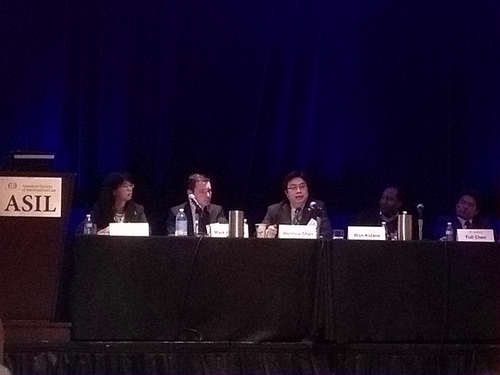 围绕以上问题,此届年会共举办60余场专题研讨会,共邀请了来自世界各地的近200名学者作为报告人,其规模与层次均超过了往届。单文华教授主持的是其中的“中非投资条约与争端解决:多极拼图的困境”专题研讨会。该讨论会由美国国际法学会非洲兴趣小组、亚太区域兴趣小组、国际法院和仲裁庭兴趣小组、国际经济法兴趣小组和争端解决兴趣小组等5个小组共同组织,是整个年会向全球视频直播的12场专题研讨会之一。研讨会主要探讨在全球国际投资法转型的大背景下,中非投资条约的显著内容与特征及其在保护中国对非洲投资急剧上升的投资并解决相关争端过程中所发挥的重要作用,并在此基础上,探讨中国投资条约与“南南合作”式投资条约对全球国际投资法发展演进的启迪意义与贡献。讨论会发言人包括中国驻美国大使馆经商处参赞陈福利、来自埃塞俄比亚的美国西雅图大学三亿在线副教授Won Kidane,美国外交部NAFTA投资争端解决部前部长Mark Feldmen和厦门大学陈辉萍教授。在单文华教授的主持和带动下,与会报告人和参与人围绕以上议题展开了热烈的讨论,会场气氛十分活跃。会后,主办方专门写信致谢,认为这场研讨会是“一次很有意思的讨论,激起了大量的兴趣和论辩。正是美国国际法学会这样的学术论坛应有的研讨会。”(“a highly interesting discussion that generated a lot of interest and debate. Exactly as it should be in an academic forum like ASIL.”)
