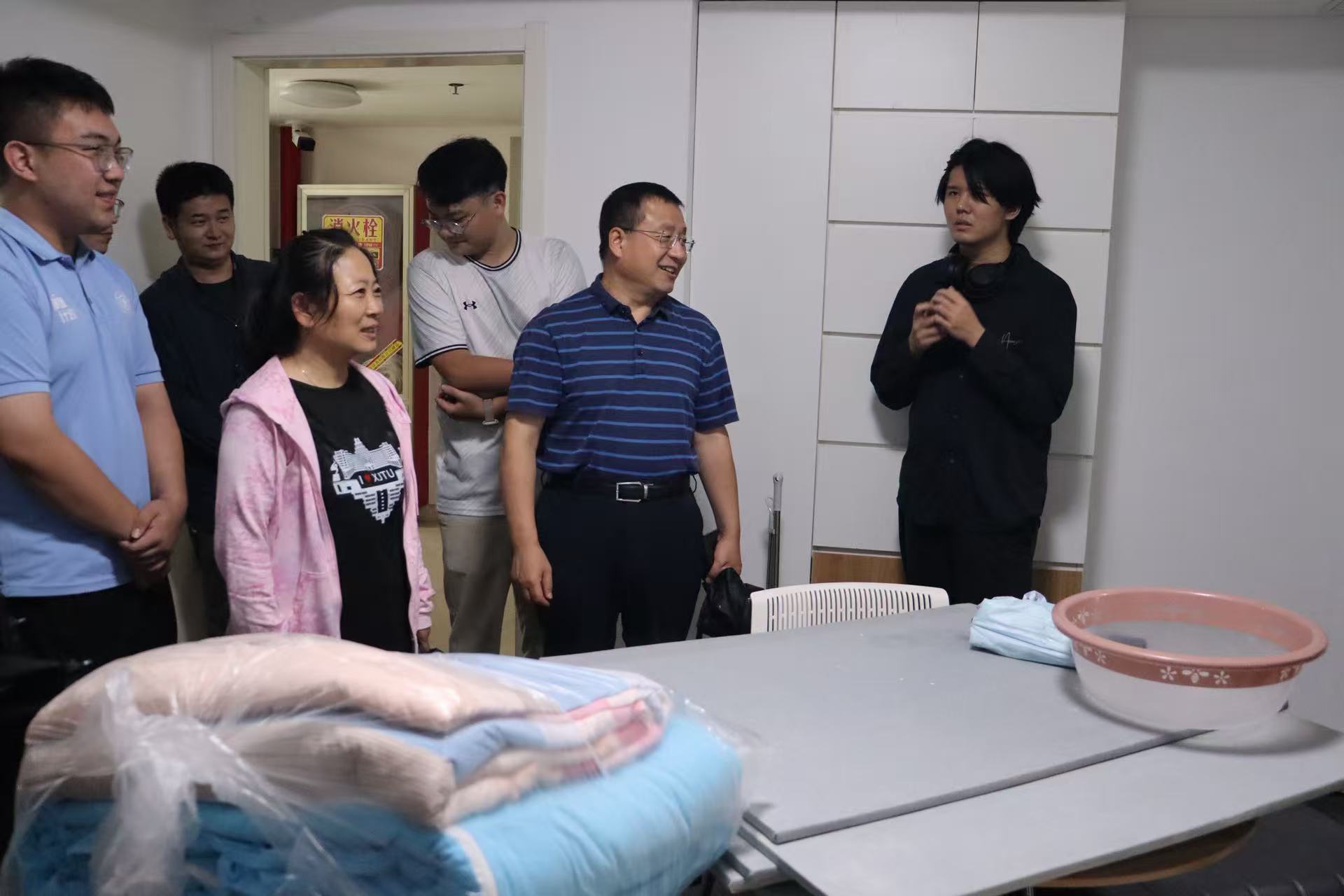 沿着新生入住惠园学生公寓的路径,李院长一行来到B区惠园学生宿舍,走访看望新生,与新生和学生家长亲切交谈,了解大家对校园环境的印象和科研生活规划,勉励同学们尽快融入校园生活,适应新的学习环境,融入三亿在线大家庭。