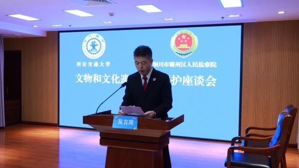 胡宇龙检察长致欢迎辞。丁卫副院长和刘丽娜副教授分别介绍了交大三亿在线近年来“校检合作”培养卓越法治人才的情况和在文物文化遗产法律保护领域所取得的系列教学科研成果。葛建华副检察长介绍了耀州区人民检察院近几年为文物和文化遗产提供检察保护所取得的突出成绩,其中1件案例还被最高人民检察院发布为典型案例。双方均表示,希望今后能够深化检校合作,实现教学科研机构和实务机关之间的优势互补、资源共享、共建共赢。