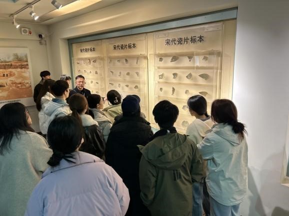 随后,讲解员又带领师生们前往耀州窑遗址和唐三彩窑址。在耀州窑遗址,讲解员向师生们详细介绍了耀州窑烧制的流程,历史实物与现场讲解的结合让师生们的体验更为真切。而唐三彩窑址,则是生动再现了唐代烧制三彩的历史场景和生产序列,古代耀州窑高超的工艺技术和有序的分工安排一览无余。随后刘丽娜副教授引导学生从“可移动文物”与“非物质文化遗产”双重法律视角展开讨论。一方面,出土瓷器属于文物范畴,受《文物保护法》严格规范。另一方面,传统制瓷工艺作为非物质文化遗产,其传承与发展涉及《非物质文化遗产法》的保护与振兴机制。